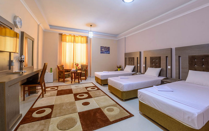 انواع اتاق این هتل عبارتند از: دو تخته، سه تخته، سوئیت یکخوابه پنج نفره، سوئیت دو خوابه چهارنفره (در برخی از اتاق ها امکان درخواست تخت اضافه وجود داره. تخت های اضافه به صورت کاناپه تختشو هستن)